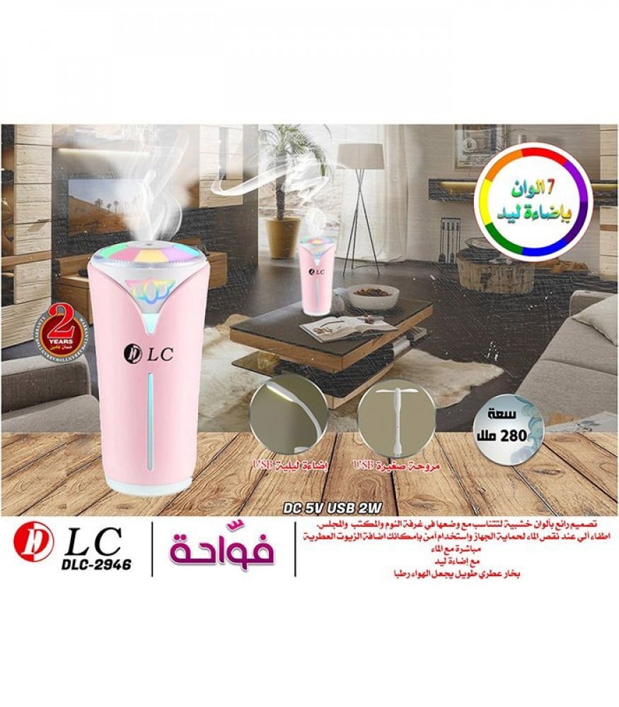 فواحة بخار باضاءة LED من دي ال سي DLC-2946 زهري 280مل :